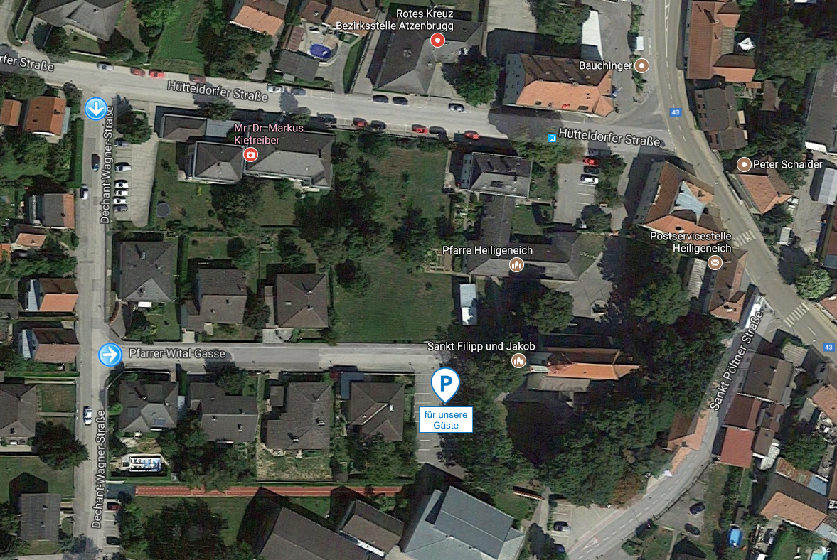 Euer Navi befüttert bitte mit der Pfarrer-Wital-Gasse, dann seid Ihr am richtigen Weg.